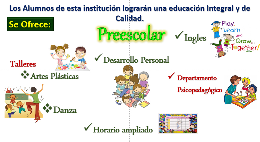 El objetivo general de PREESCOLAR es propiciar el desarrollo integral y armónico del niño, cumpliendo con los planes y programas de la S.E.P., y con actividades extracurriculares que ofrece esta institución.